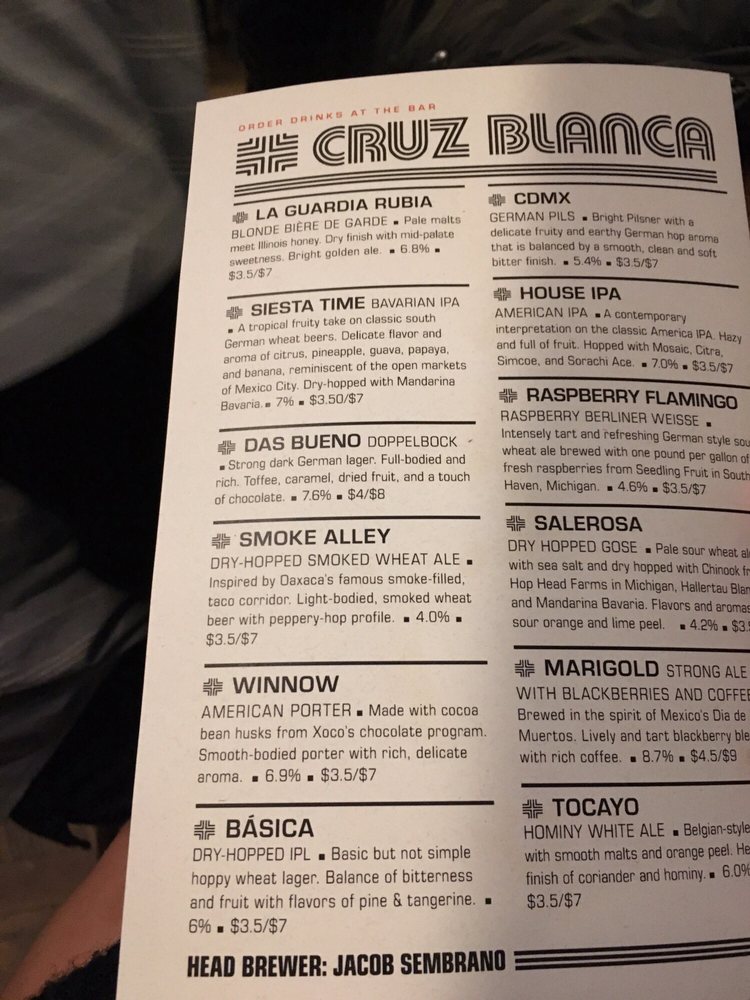 Cruz Blanca Brewery, located in Chicago, offers a diverse Mexican menu with options for pescatarians, vegans, and limited vegetarians. The brewery provides a casual yet classy atmosphere, perfect for lunch, dinner, or happy hour. Customers praise the friendly staff, great beers, and delicious dishes like cauliflower tacos, chorizo quesadillas, and brisket nachos. The homemade tortilla chips and Palm Shade beer receive special mentions. With indoor and outdoor seating, attentive waitstaff, and a wide selection of beers, Cruz Blanca Brewery is a place where you can enjoy a satisfying meal with friends and family. If you're in the area, make sure to stop by and experience the vibrant flavors and welcoming ambiance for yourself.